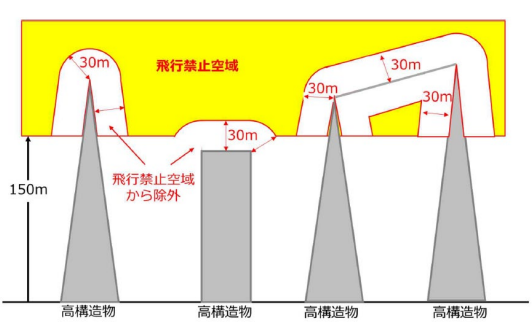ただし、この例外規定はあくまで「高さ150m以上」の許可が不要になるだけです。